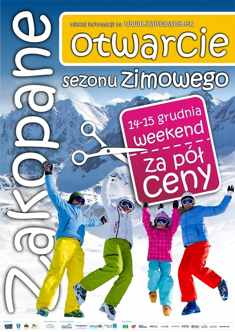 Już 14 grudnia 2013 wielkie otwarcie sezonu narciarskiego w Zakopanem, a co za tym idzie? Specjalnie z tej okazji zimowy weekend za pół ceny, w którym biorą udział cztery największe stacje narciarskie w Zakopanem - Nosal, Harenda, Polana Szymoszkowa i Kasprowy Wierch. Dodatkowo do akcji przyłączyły się również hotele, pensjonaty, schroniska górskie, restauracje, karczmy oraz obiekty rekreacyjne.